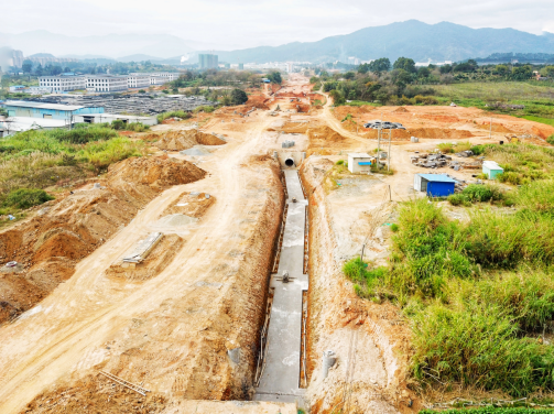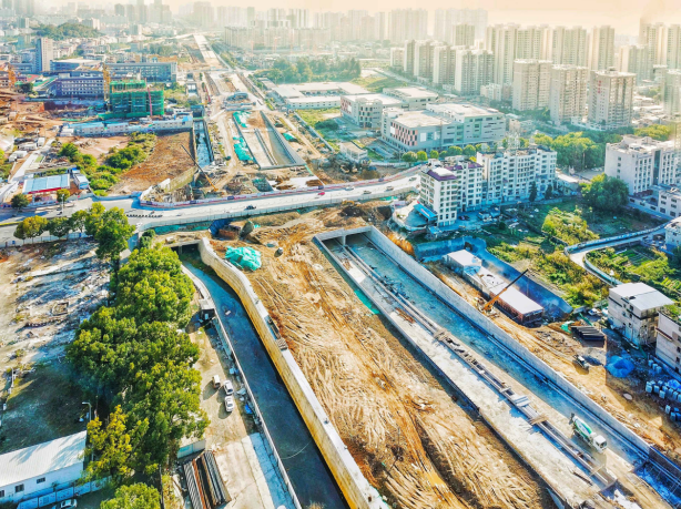 2017年9月開工。目前,下穿車型通道U型槽、箱型通道、排洪溝主體已完成管廊主體結(jié)構已完成45米。
