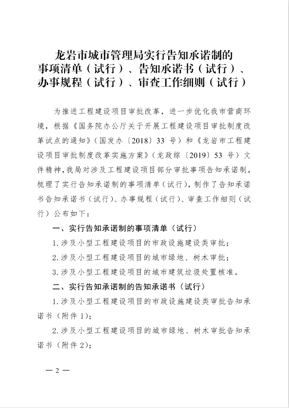龍巖市城市管理局關(guān)于印發(fā)工程建設(shè)項(xiàng)目審批制度改革有關(guān)政策的通知(龍城[2019]91號(hào))